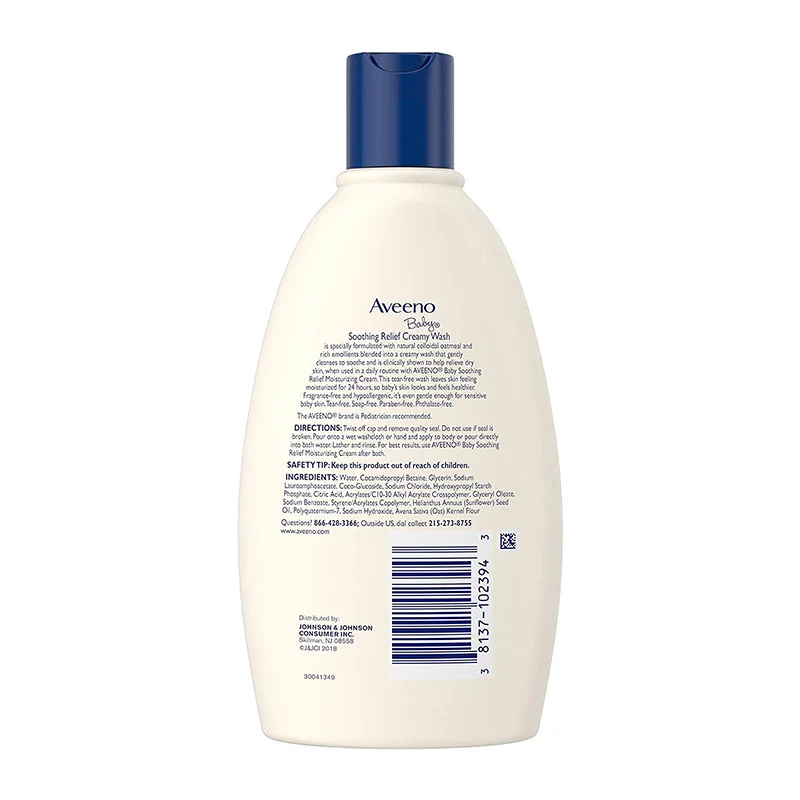 AVEENO Baby Soothing Relief Creamy Wash is specially formulated with ACTIVE NATURALS Colloidal Oatmeal and rich emollients that gently cleanse and soothe the skin.