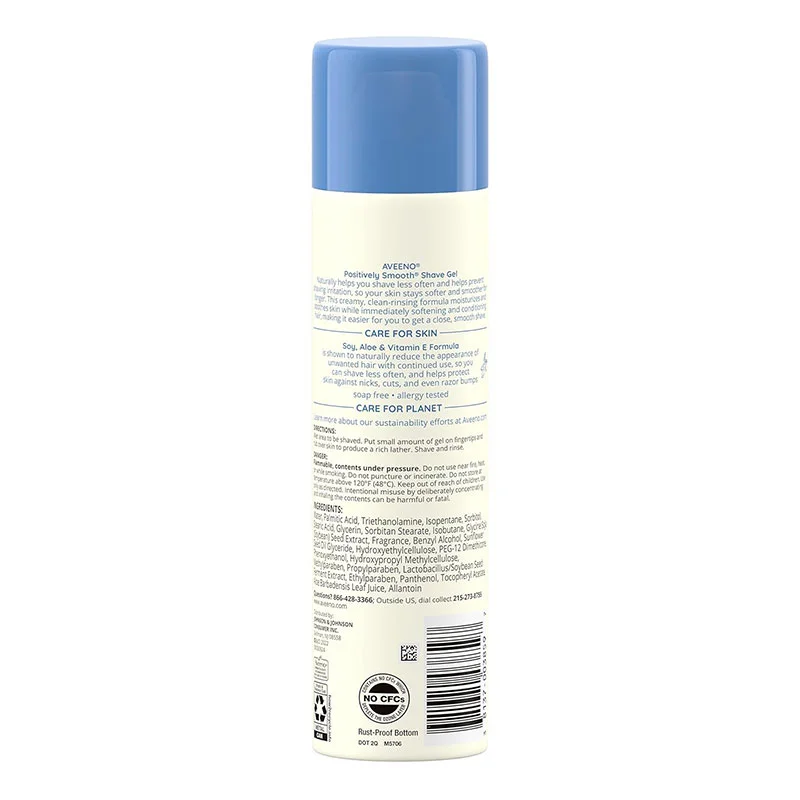 Aveeno Positively Smooth Shave Gel – 198gm, Shave off some of your shaving time—this moisturizing shave gel actually helps you shave less often with continued use. Containing soy, aloe and vitamin E, it naturally minimizes the appearance of unwanted hair and helps prevent nicks, cuts and razor bumps. So say goodbye to shaving irritation and hello to a smooth, close shave.