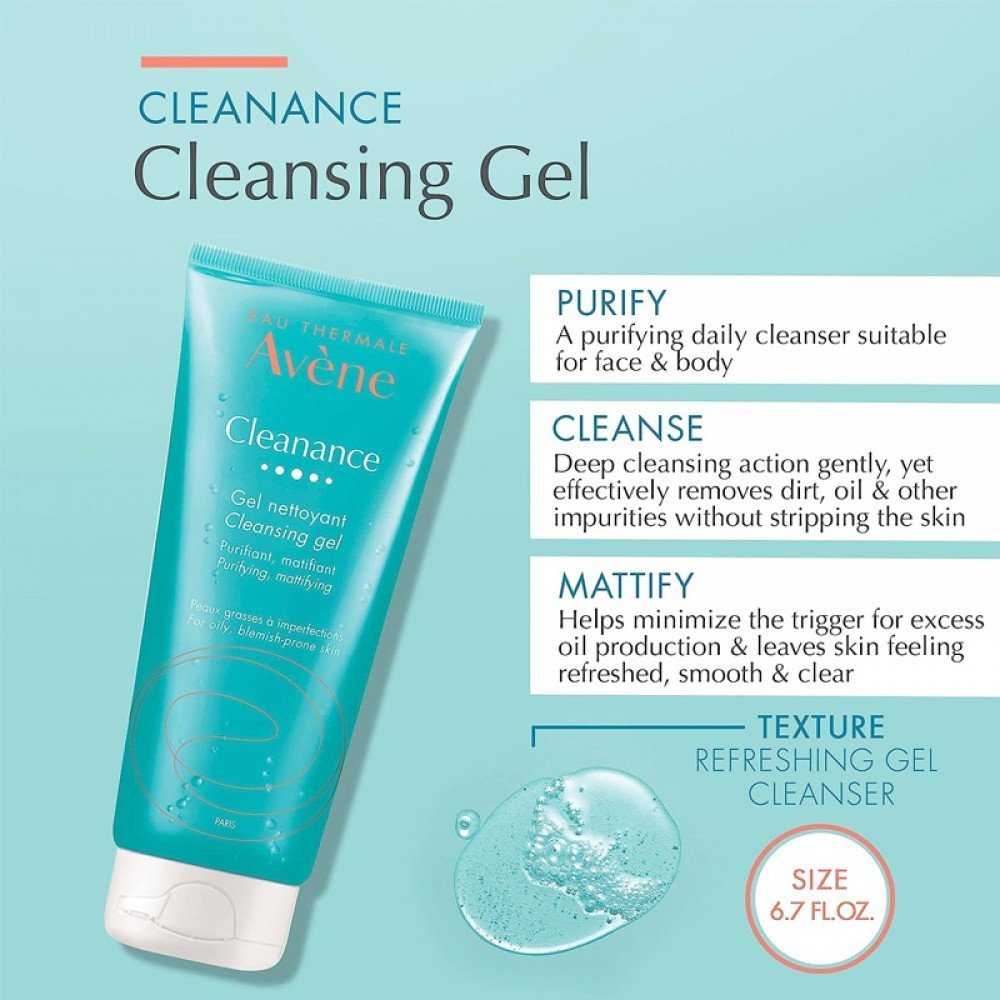 The Avène Cleanance Cleansing Gel maintains the pH balance of the skin while gently cleansing, eliminating pollutants, and managing excess oil. Ideal for oily, blemish-prone facial and body skin.