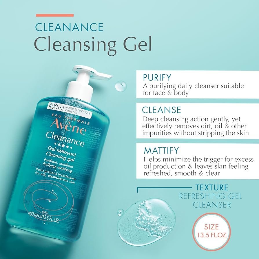 400 ML of Avene Cold Cleanance Gel Cleaner.Avene Cold Cleanance Cleansing Gel gently cleanses, targets, and doesn’t remove skin pigmentation.