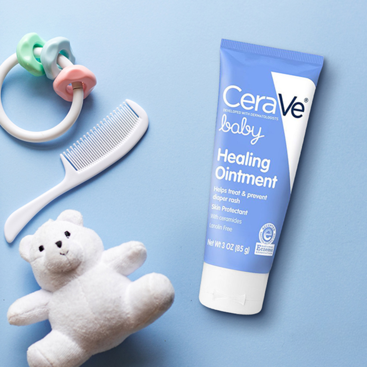 CeraVe Baby Healing Ointment was developed with pediatric dermatologists to help prevent and treat diaper rash. This petrolatum-based baby ointment for diaper rash forms a protective seal that helps seal out wetness and protect baby’s skin. Formulated with three essential ceramides, hyaluronic acid and vitamin E, CeraVe Baby Healing Ointment leaves baby’s skin soothed and helps maintain its protective skin barrier.