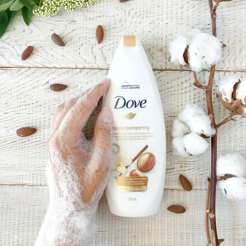 The softening benefits of shea butter for skin are well known, which is why we’ve added it to Dove Purely Pampering Shea Butter with Warm Vanilla Body Wash. This pampering Dove body wash wraps you in a cloud of rich, creamy lather and leaves your skin feeling softer, smoother, and delicately fragranced after just one shower.