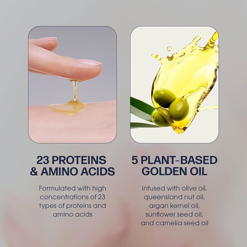 - BENEFITS – The ingredients used for our formula are chosen with purpose for its natural benefits. Protein (Keratin) and Amino Acid help to seal hair cuticles to eliminate frizz and add softness and shine while moisturizing dry cuticles. The combined Plant-Derived Oils add softness and strengthen hair by penetrating the hair shaft and locking in moisture. This hair treatment is also free of sulfate, silicone, and parabens. Get softer, silkier hair and hair cuticle damages repaired and restored.
