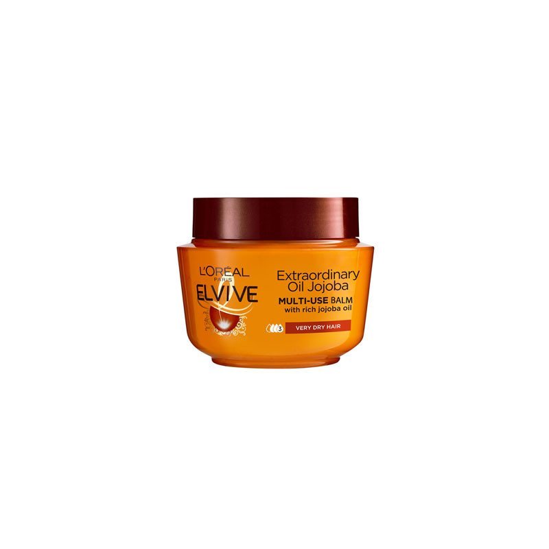 - Loreal Elvive Extraordinary Oil Jojoba Multi-Use Balm, with rich jojoba oil, works on hair fibre from root to tip.