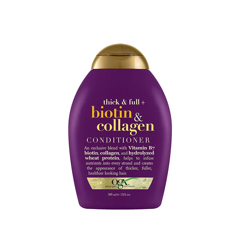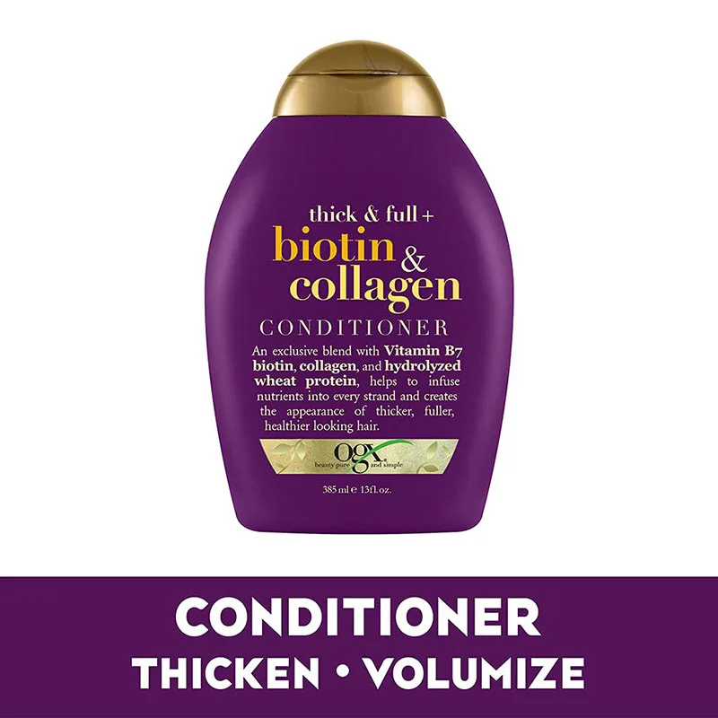 OGX Thick & Full + Biotin & Collagen is a volumizing blend that helps thicken and texture fine hair. Helps infuse each strand with nutrients and creates the appearance of thicker, fuller hair with added volume.