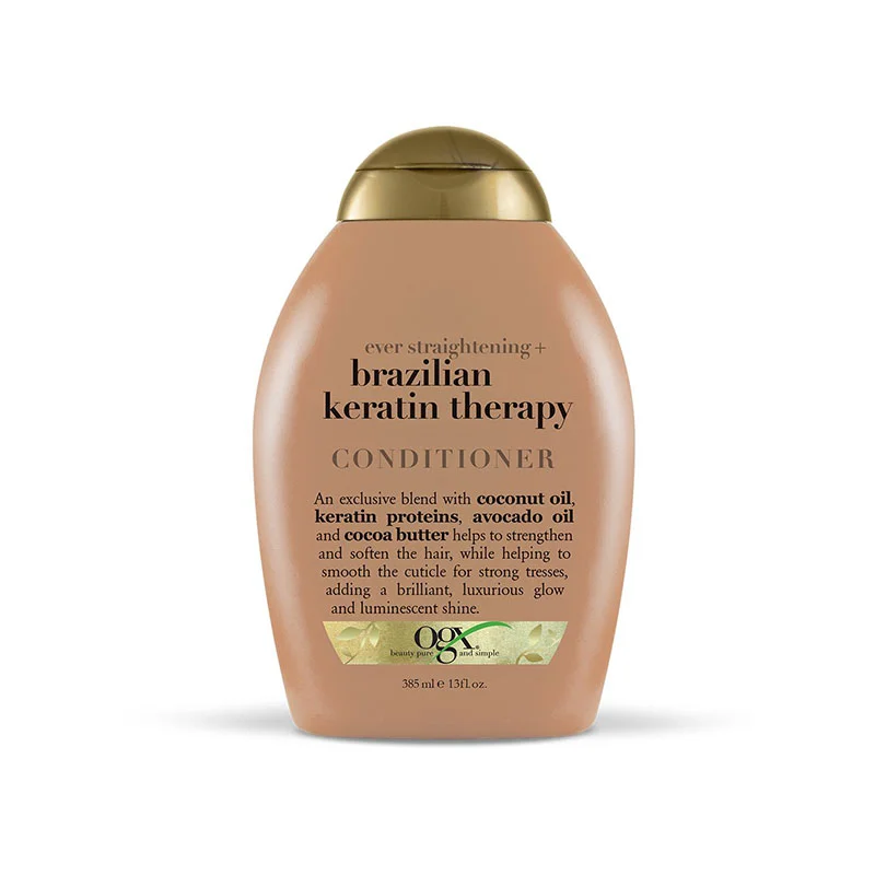 OGX Ever Straightening+ Brazilian Keratin Smooth helps to smooth and strengthen your hair thanks to its blend of coconut oil, keratin proteins, avocado oil, and cocoa butter.
