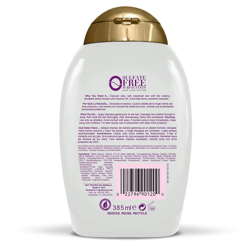 • IRRESISTiBLY DELICIOUS SCENT: The creamy coconut, white peach, and shea butter scent leaves locks with an irresistibly good smell every time you lather up Plus the sulfate-free surfactant hair care system is paraben-free and gentle on your tresses