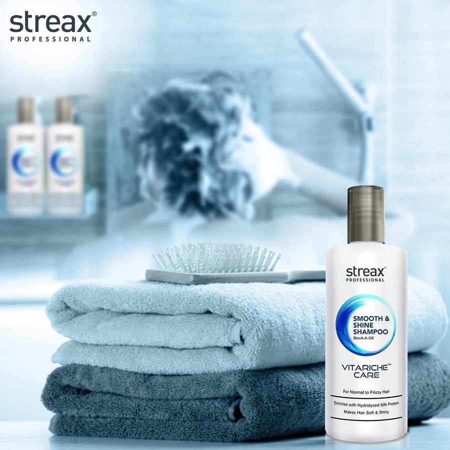 - VITARICHE CARE SHAMPOO – Streax Professional Vitariche Care Smooth and Shine Shampoo is a deep-hydrating and cleansing shampoo that helps to soften, smoothen and rejuvenate normal to dry & frizzy hair